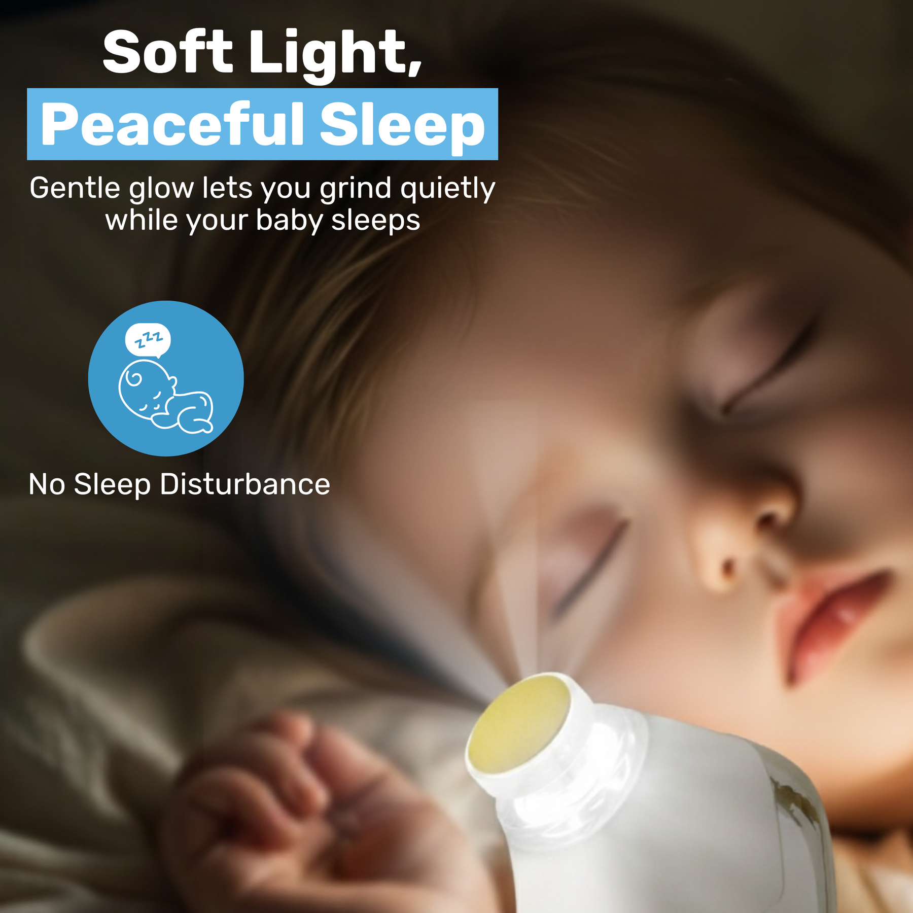 LED Light for Clear, Accurate Filing: A built-in LED light guides each movement, helping parents shape small newborn nail file edges with confidence. This clear illumination makes it easier to see tiny fingers, especially when handling baby fingernail clippers, infant nail file, or a gentle baby nail filer. Every trim feels more controlled, especially during nighttime routines.